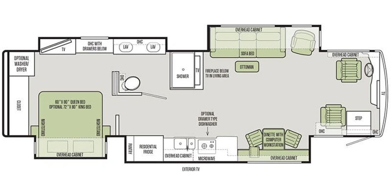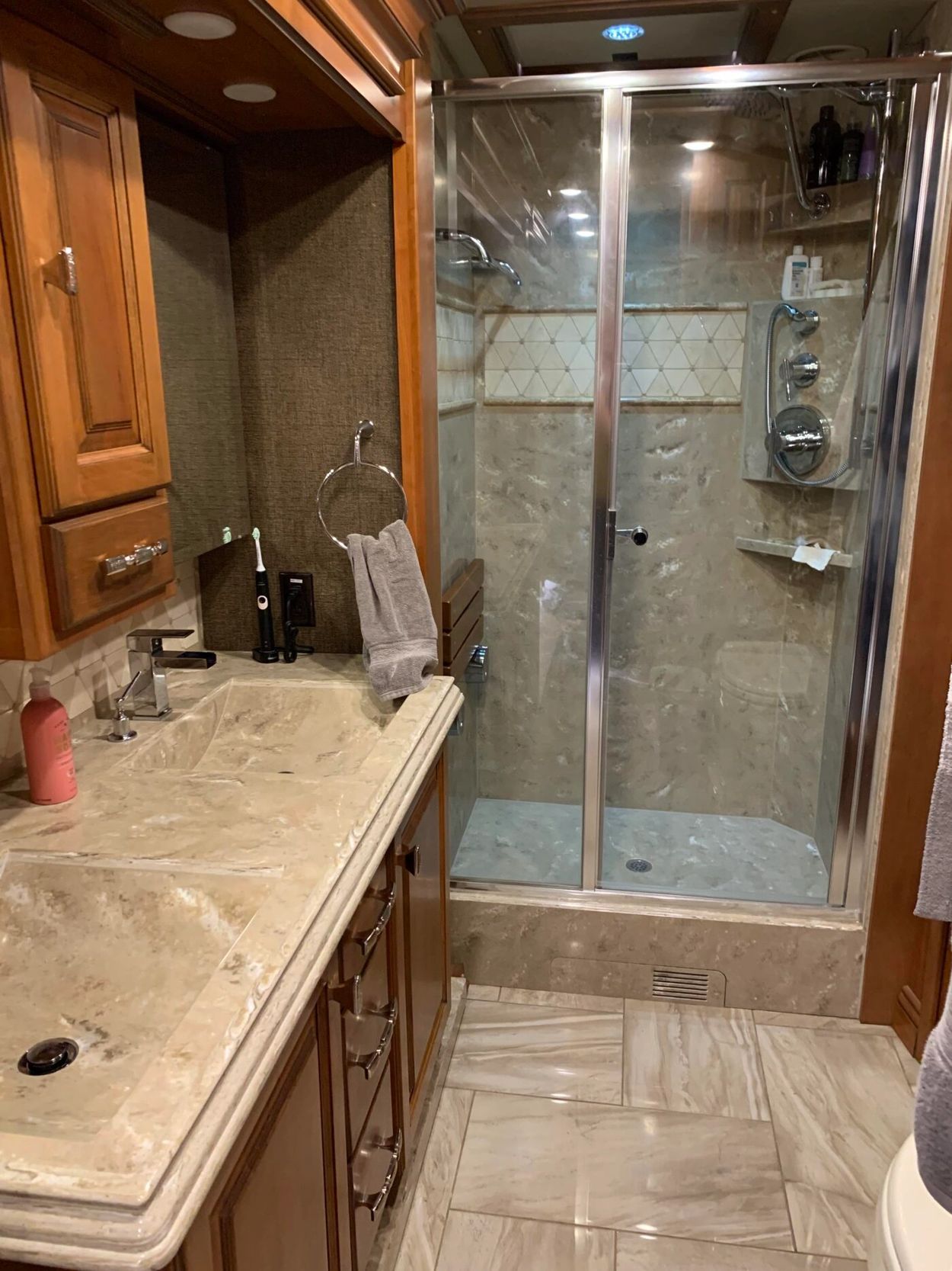 Rent this luxury RV that can sleep up to 4 guests in 2 beds and features one full bath with his and hers sinks. As with all of our units this RV comes stocked with; linens, cookware, dish-ware, silverware, and most interior items needed to get started. We also include 1000 FREE miles per week purchased and UNLIMITED generator use.